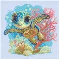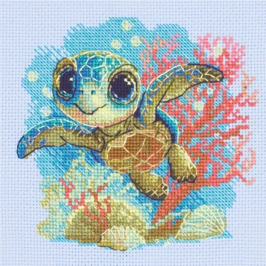 This counted cross stitch design from Aine, features the cutest baby turle with huge eyes, swimming happily along the seabed.