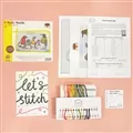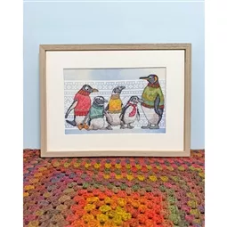 The kit contains Zweigart 14 count full colour printed aida fabric, pre-sorted stranded cottons, needle, a clear chart and instructions. It uses cross stitch, fractionals, back stitch and French knots.