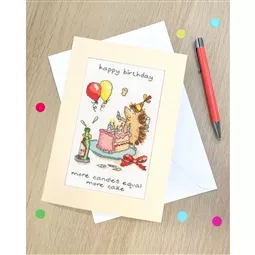 This counted cross stitch card design from Cockadoodle Cards for Bothy Threads, features a hedgehog on his birthday celebrating that more candles means more cake!