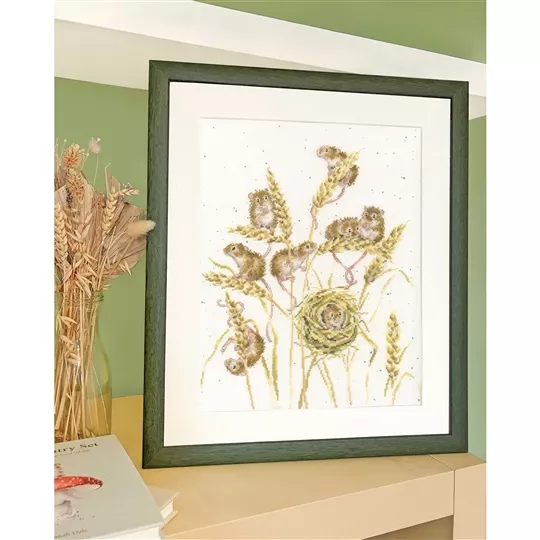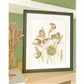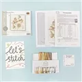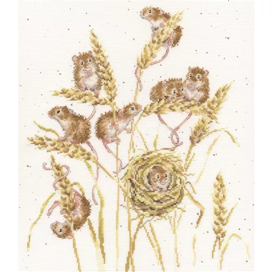 The kit contains Zweigart 16 count white aida fabric printed with speckles, pre-sorted stranded cottons, a needles, a clear chart and instructions. It uses cross stitch, back stitch and French knots.