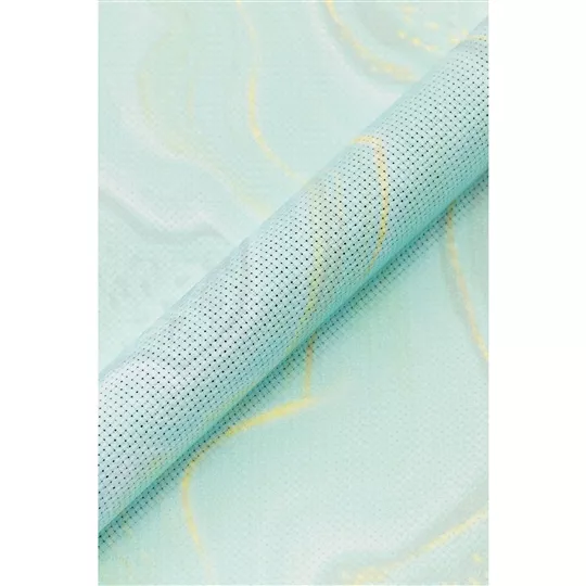 This piece of fabric is made of 100% Cotton, measures 15 x 18 inches, has 14 holes to the inch and is printed with shades of turquoise and gold to represent malachite stone.