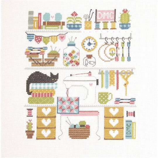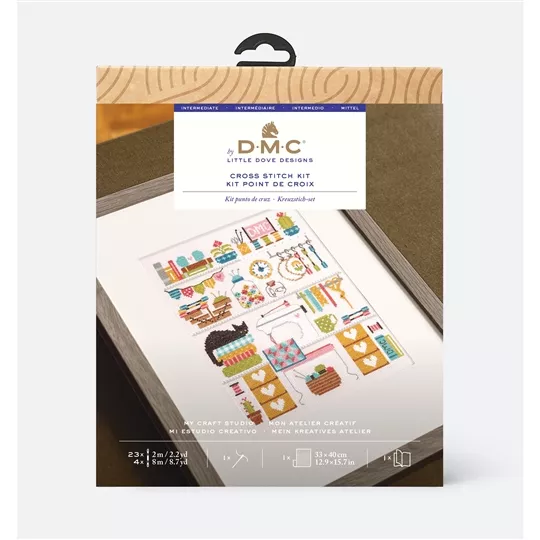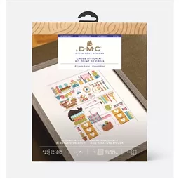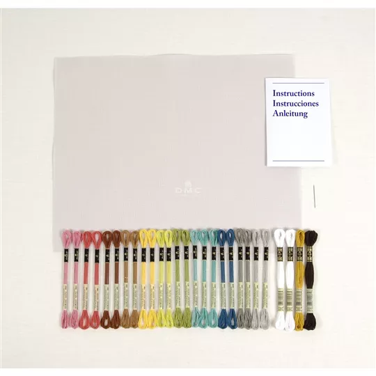 The kit contains 14 count white aida fabric, DMC stranded cottons, needle, charted design and instructions.