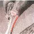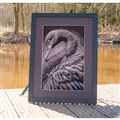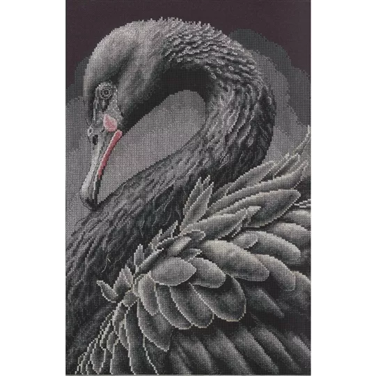 The kit contains 32 count dark grey cotton/modal evenweave fabric - stitched over two effectively 16 count, DMC stranded cottons, needle, enlarged chart and clear instructions. Uses cross stitch and back stitch.