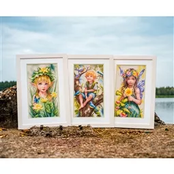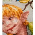 This counted cross stitch design from Lanarte, features a little elf boy sat in a tree gossiping with colourful birds about thier day.