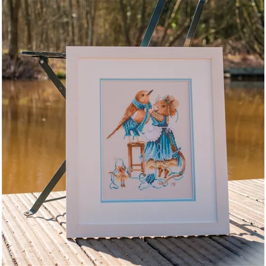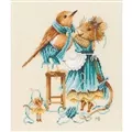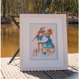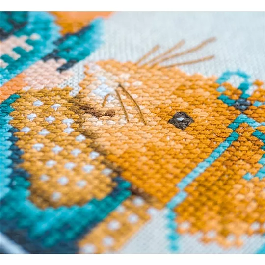 The kit contains 27 count ivory cotton evenweave fabric - stitched over two effectively 14 count, DMC stranded cottons, needle, enlarged chart and clear instructions. Uses cross stitch, long stitch and back stitch.