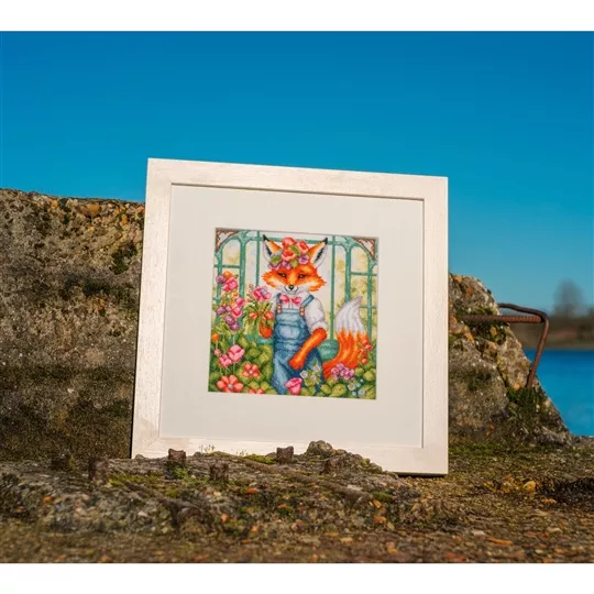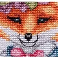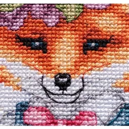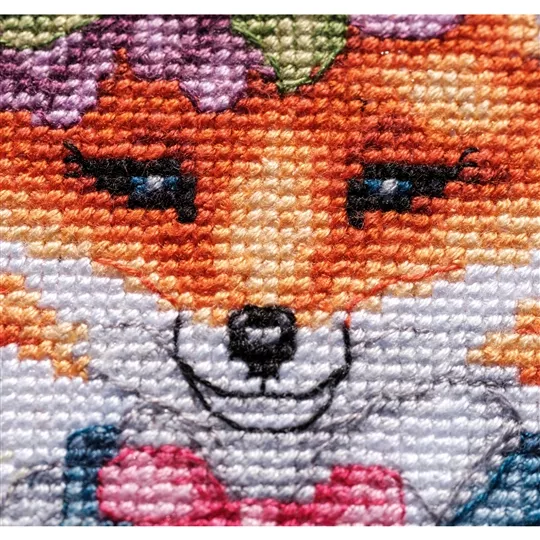 The kit contains 16 count white aida fabric, DMC stranded cottons, needle, enlarged chart and clear instructions. Uses cross stitch, half stitch, long stitch and back stitch.