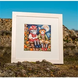 The kit contains 16 count white aida fabric, DMC stranded cottons, beads, ribbon, needle, enlarged chart and clear instructions. Uses cross stitch and back stitch.