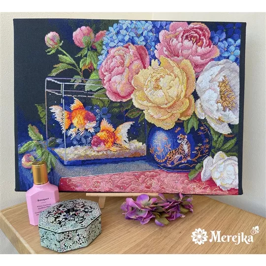 The kit contains Zweigart 16 count black aida fabric, DMC stranded cottons, needle and instructions. Does not come with a printed chart, Stitchers can use the free smart stitching app Fantastitch, package has a QR code link to download the app and see a tutorial. Try for free - download the app now and try out one of the 30 free sample designs.
