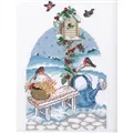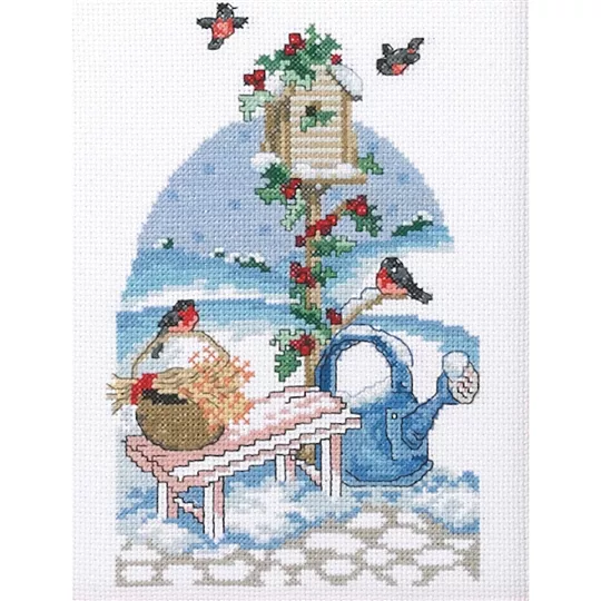 The kit contains 14 count white aida fabric, DMC stranded cottons, needle, chart and instructions.