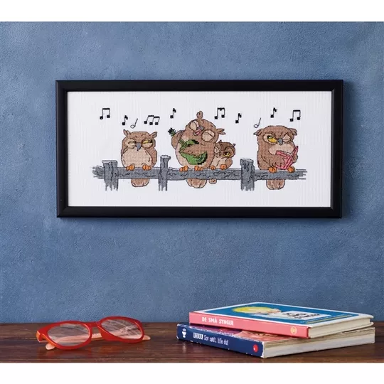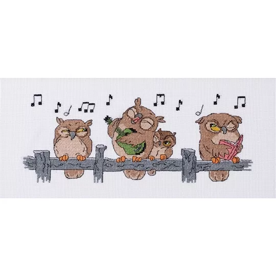 The kit contains 14 count white aida fabric, DMC stranded cottons, needle, chart and instructions.
