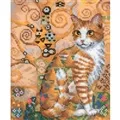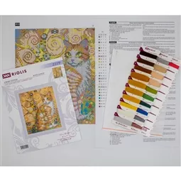 This counted cross stitch design from RIOLIS, features a ginger tabby cat blending into a Klimt style tree of life.