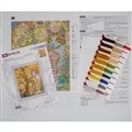 The kit contains Zweigart 14 count white aida fabric, wool/acrylic threads - used for their colour depth and great coverage, needle, colour chart and instructions.
