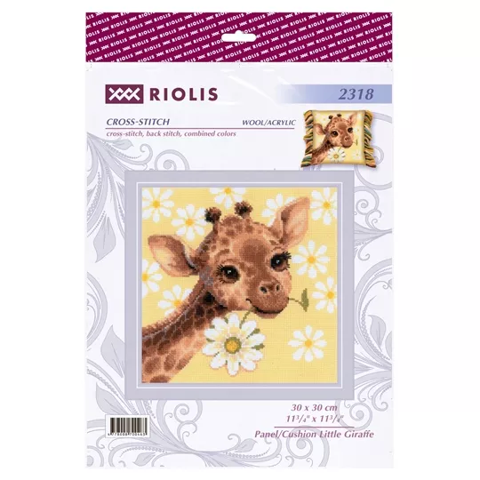 The kit contains Zweigart 10 count white aida fabric - enough to back, wool/acrylic threads - used for their colour depth and great coverage, needle, colour chart and instructions.