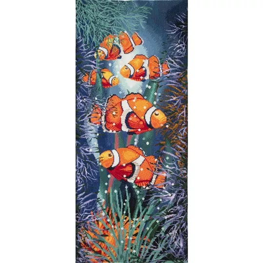 The kit contains 14 count aida fabric with coloured printed design, pre-sorted six strand polyester threads, needle, colour chart and instructions. A budget friendly project.