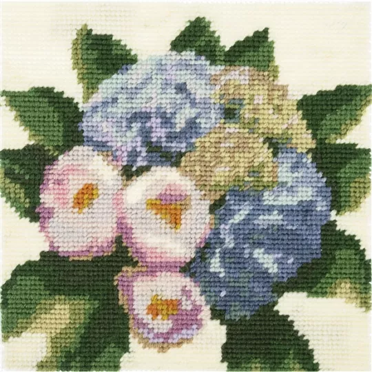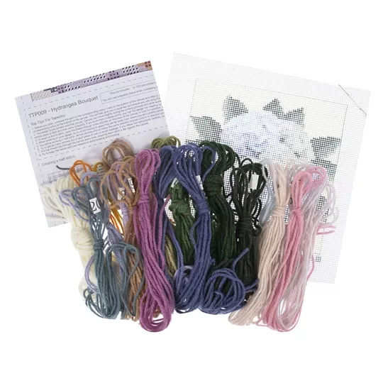 The kit contains 12 count colour printed canvas, acrylic yarns, needle and clear instructions. A budget friendly project.