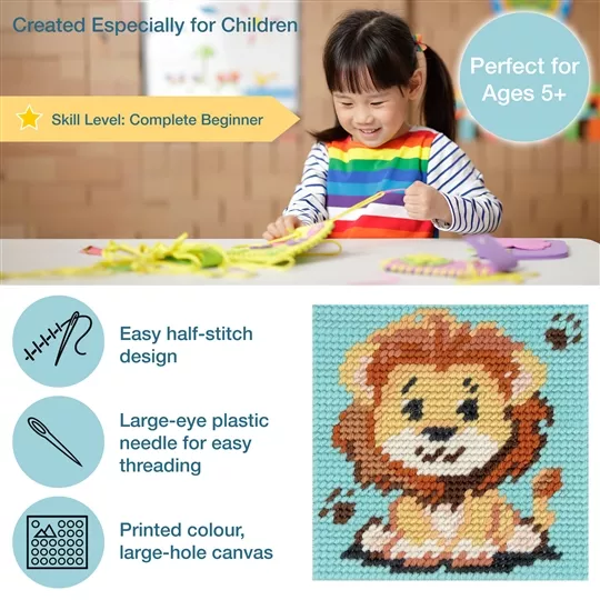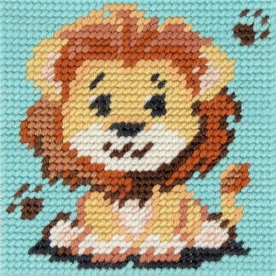 This tapestry design from Trimits, features a happy little lion, great for beginners and kids, comes with a plastic needle.