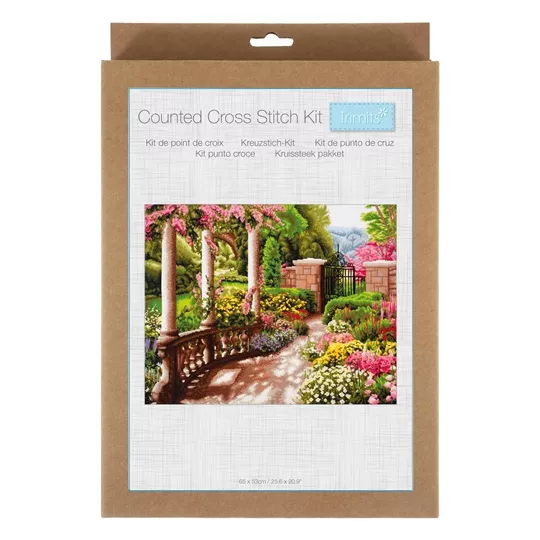The kit contains 14 count white aida fabric, pre-sorted six strand polyester threads, needle, colour chart and instructions. A budget friendly project.
