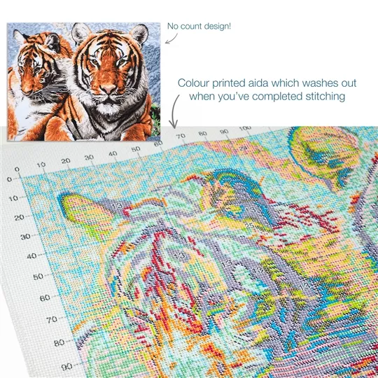 This printed cross stitch design from Trimits, features a pair of tigers at rest, their striking markings are just beautiful.