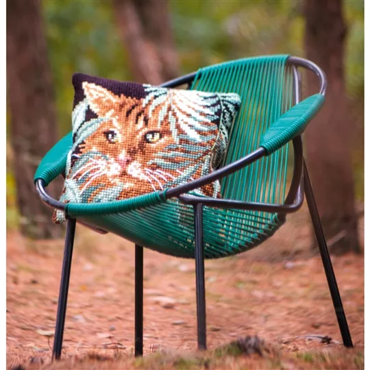 The kit contains 4.5 count hand painted canvas, acrylic yarns, "I Stitch with Vervaco" label, needle, picture of finished design and coloured diagram with instructions. Backings are sold separately, and are available in the cushion accessories range.
