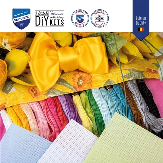 - You must register to receive the pattern emails: vervaco.be/secret-stitch-along or the Facebook group.