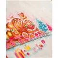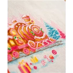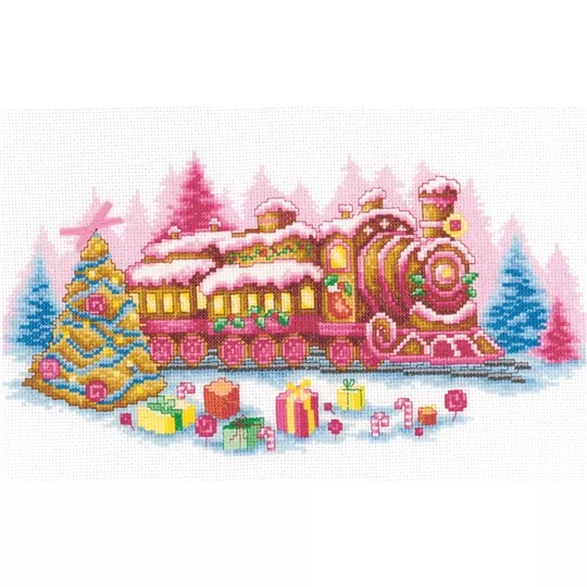 The kit contains 14 count white aida fabric, DMC stranded cottons, needle, enlarged chart and instructions. Uses cross stitch and long stitch.