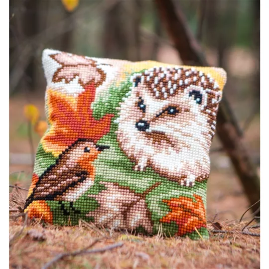 Vervaco Hedgehog and Robin Cushion Cross Stitch Kit