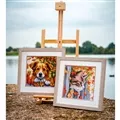 The kit contains 14 count ecru aida fabric, DMC stranded cottons, needle, enlarged chart and instructions. Uses cross stitch, half cross stitch and back stitch.