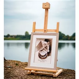 The kit contains 16 count ecru aida fabric, DMC stranded cottons, needle, enlarged chart including alphabet and instructions. Uses cross stitch and back stitch.