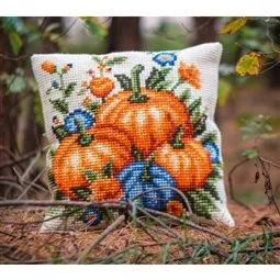 The kit contains 4.5 count hand painted canvas, acrylic yarns, "I Stitch with Vervaco" label, needle, picture of finished design and coloured diagram with instructions. Backings are sold separately, and are available in the cushion accessories range.
