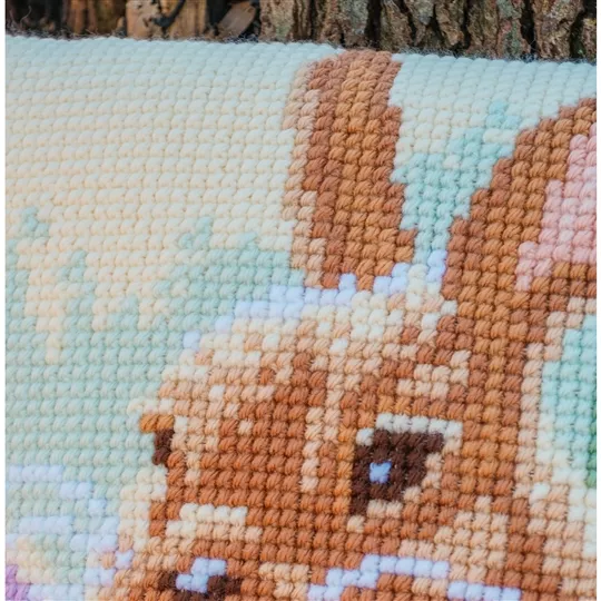 The kit contains 4.5 count hand painted canvas, acrylic yarns, "I Stitch with Vervaco" label, needle, picture of finished design and coloured diagram with instructions. Backings are sold separately, and are available in the cushion accessories range.