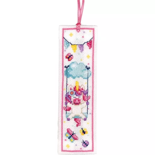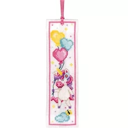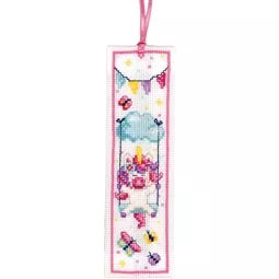 The kit contains 18 count white aida fabric, DMC stranded cottons, ribbon, needle, enlarged chart and instructions. Uses cross stitch and back stitch.