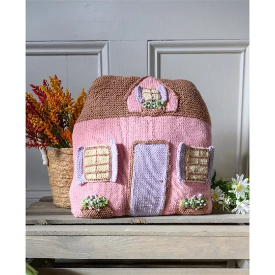 Review - Lion Brand Yarn Cosy Pink House Pillow Knitting Pattern