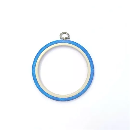 This hoop measures 9.5cm around the outer edge (3.7 inches) and the outer ring is blue in colour.