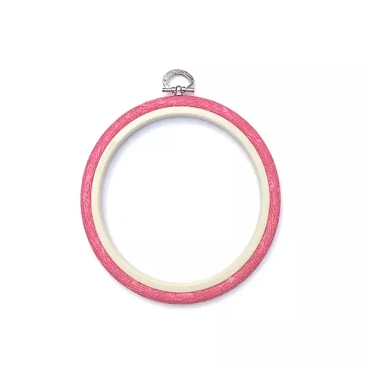 This hoop measures 13.5cm around the outer edge (5.3 inches) and the outer ring is dark pink in colour.