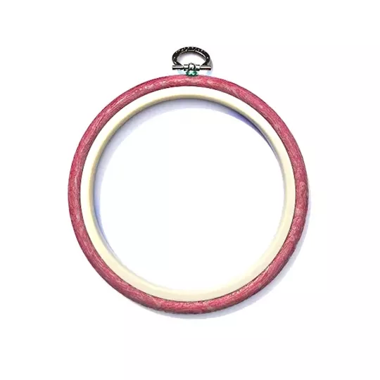 This hoop measures 13.5cm around the outer edge (5.3 inches) and the outer ring is red in colour.