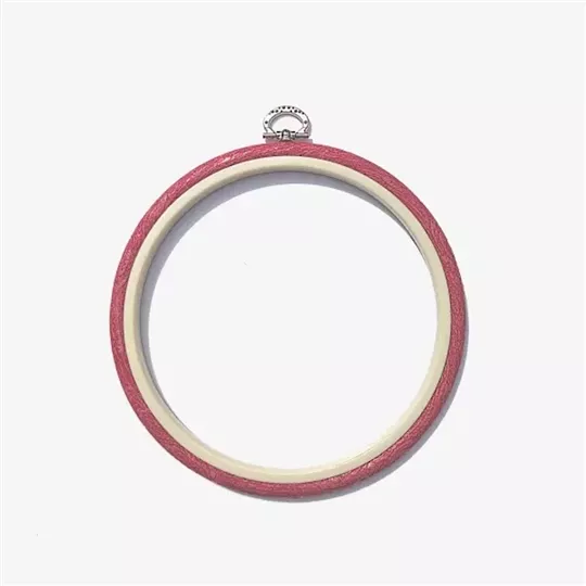 This hoop measures 17cm around the outer edge (6.75 inches) and the outer ring is red in colour.