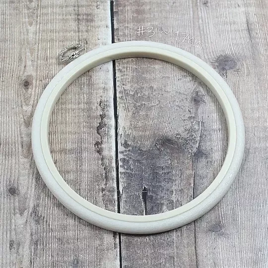 This hoop measures 17cm around the outer edge (6.75 inches) and the outer ring is white in colour.