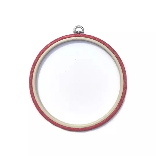 This hoop measures 20.5cm around the outer edge (8 inches) and the outer ring is red in colour.