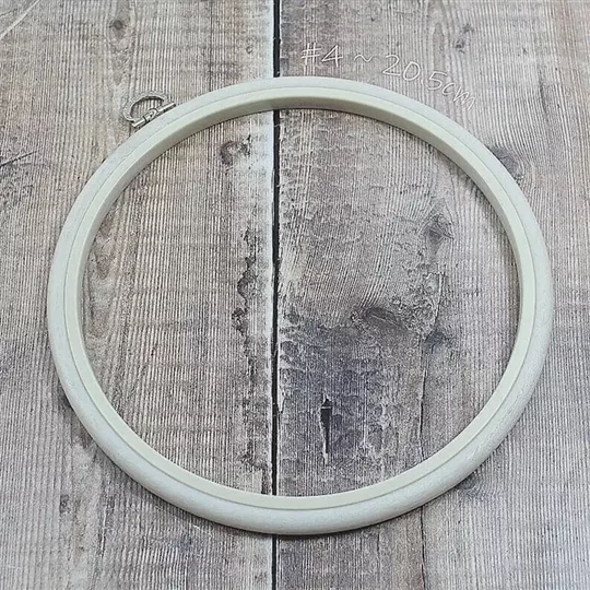 This hoop measures 20.5cm around the outer edge (8 inches) and the outer ring is white in colour.