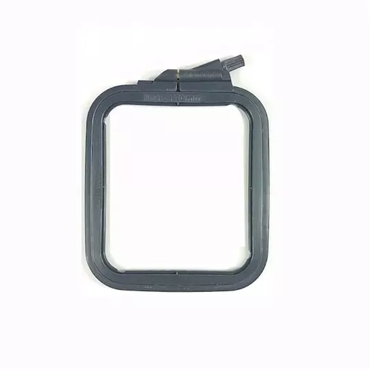 This square hoop measures 11cm x 9.5cm around the inside edge (4.3 x 3.75 inches) and is dark grey in colour.