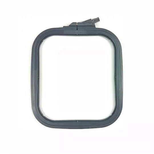 This square hoop measures 14.5cm x 16.5cm around the inside edge (5.7 x 6.5 inches) and is dark grey in colour.
