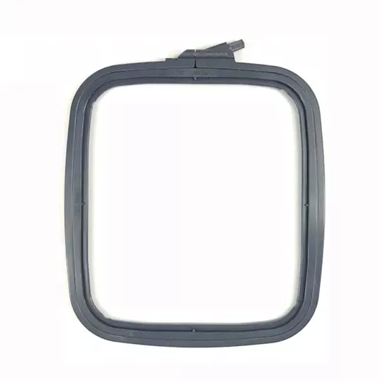 This square hoop measures 19.5cm x 22cm around the inside edge (8 x 9 inches) and is dark grey in colour.