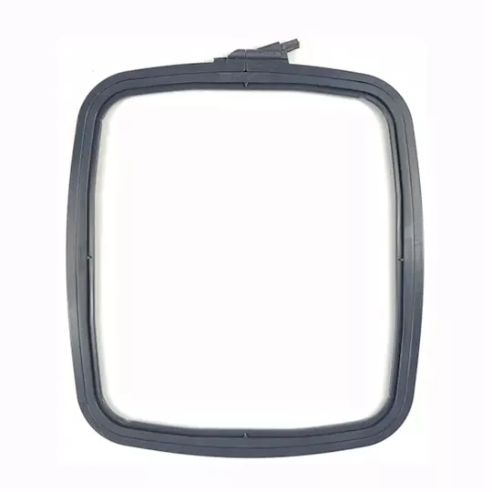 This square hoop measures 25cm x 28cm around the inside edge (10 x 11 inches) and is dark grey in colour.
